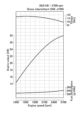 | 定格出力/回転数 *1 kW (HP) / rpm (SAE J1995に基づくグロス値 ) |